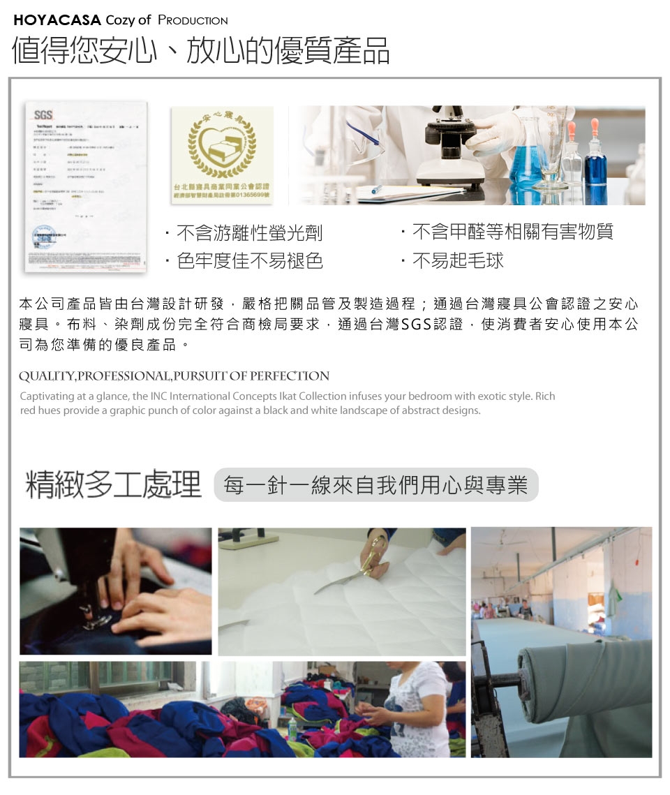 .可水洗/不可烘乾/不可漂白/勿使用強力漂白清潔劑(含小蘇打、酵素)/浸泡時間請勿超過30分鐘/建議可放入大型洗衣袋後再清洗/勿將洗滌劑直接接觸寢具表面