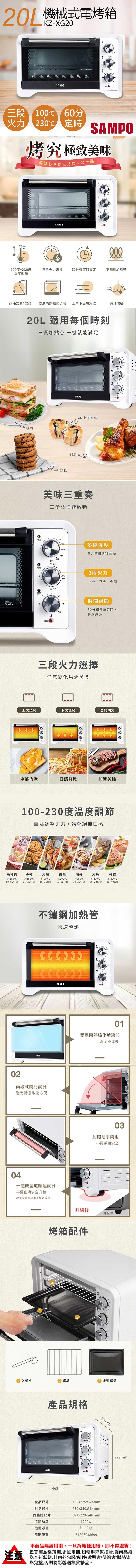 【聲寶SAMPO】20L機械式電烤箱 KZ-XG20