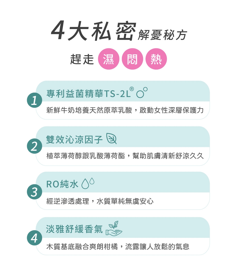 「私密護膚柔濕巾(沁涼)」 因為含有薄荷成分,懷孕/哺乳期婦女請避免使用。