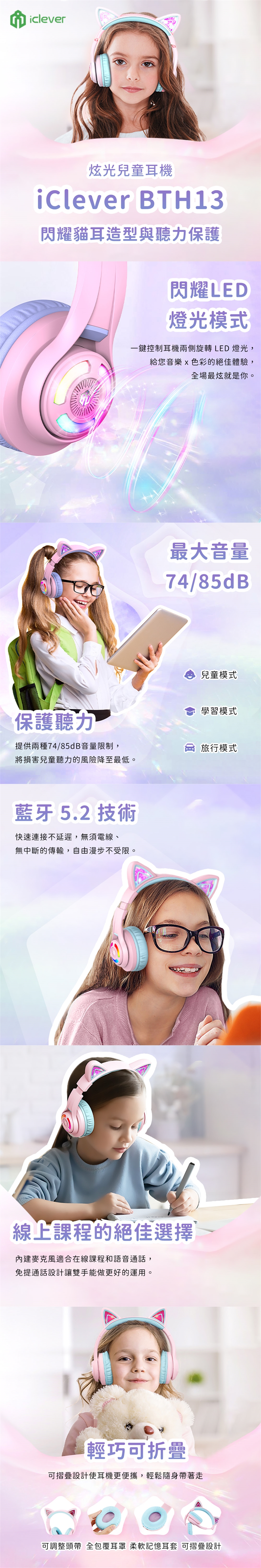 產品名稱:iClever BTH13 炫光無線兒童耳機