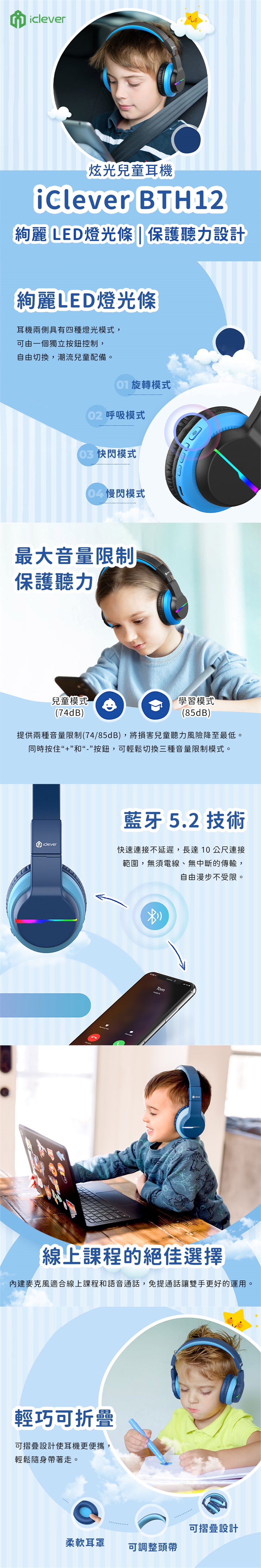 產品名稱:iClever BTH12 炫光無線兒童耳機