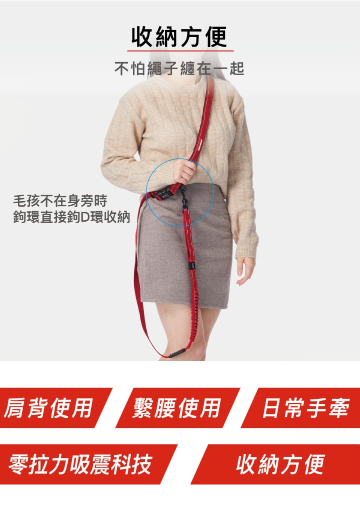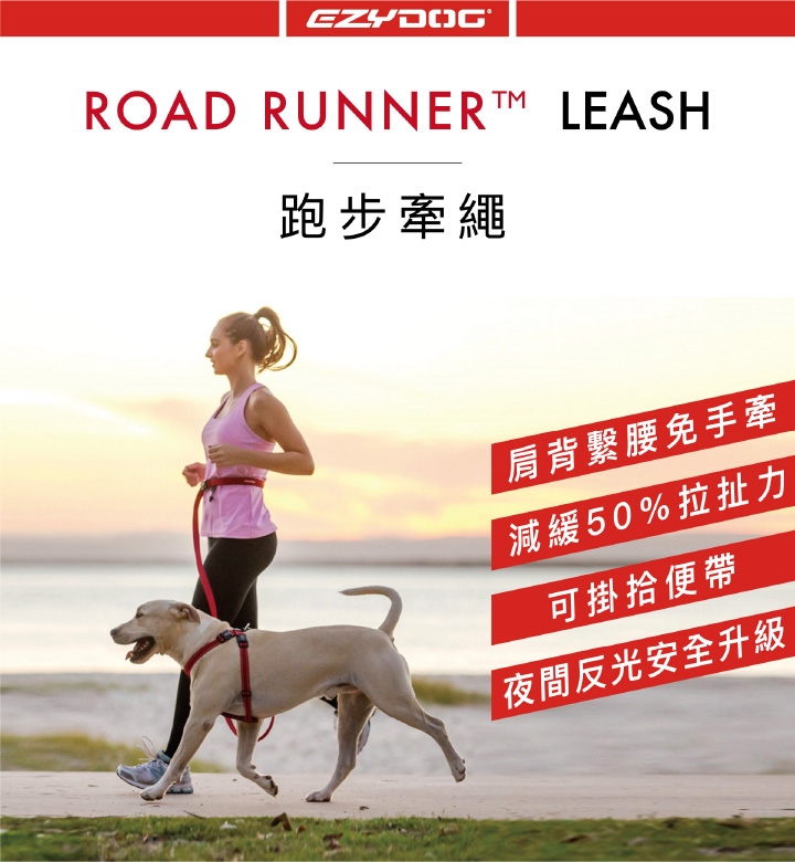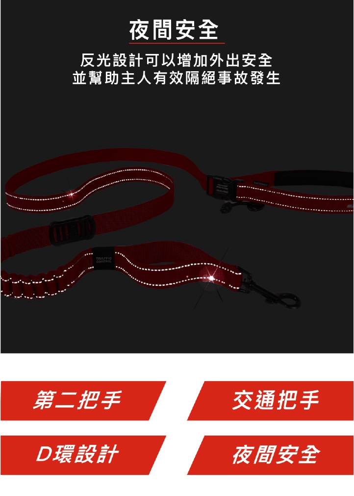 澳洲EZYDOG專為喜歡運動的狗狗和狗主人設計的免手牽牽繩主要特性,可綁在腰部以及肩背,超彈力吸震科技減緩50%拉扯力,有效減緩愛犬突然暴衝的拉力,避免拉傷,是爆衝狗狗最大剋星。交通管制把手安全沒煩惱,反光設計提高能見度夜間不怕看不見。