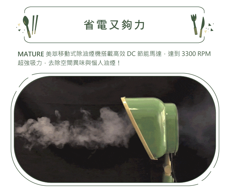 ◉移動式除油煙機│高效DC節能馬達,3300PRM超強吸力達到省電又夠力
