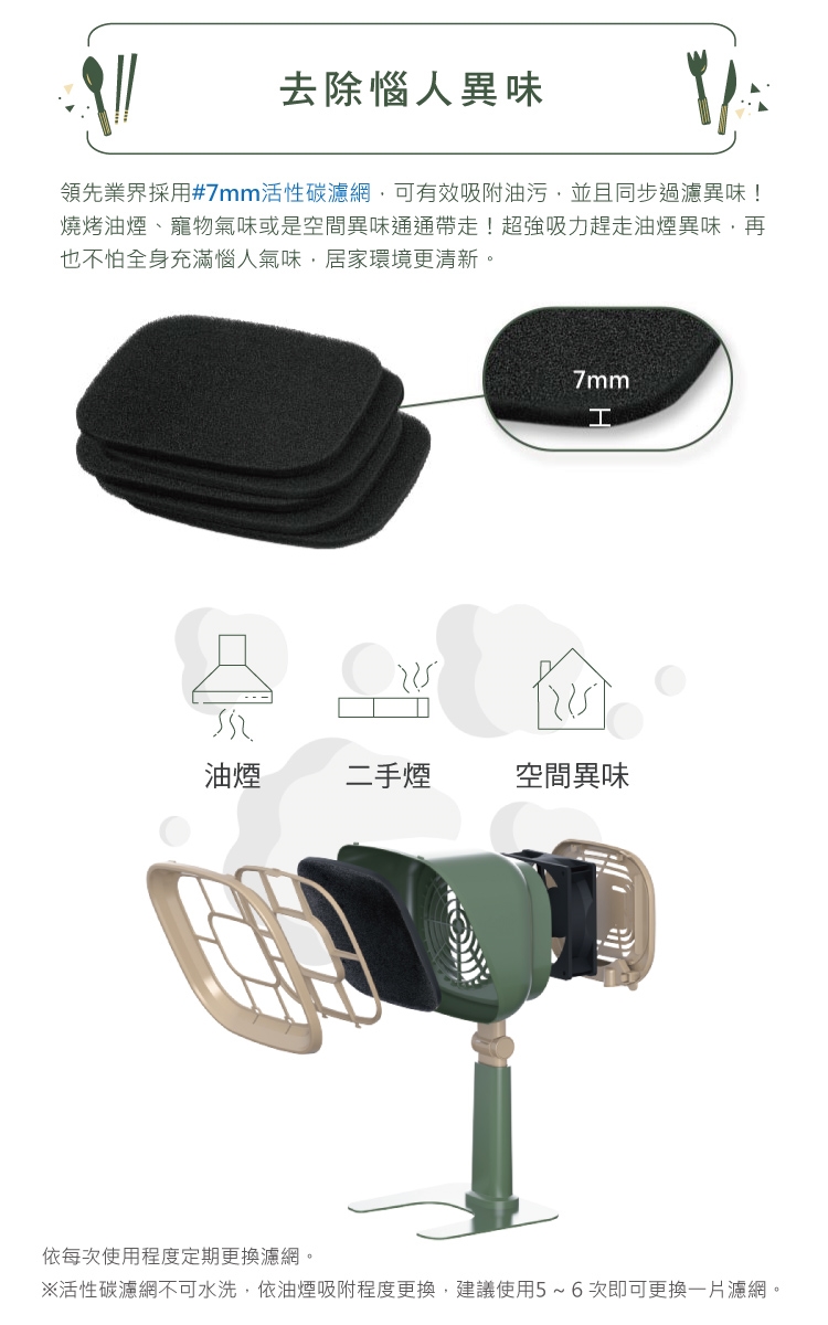 │高效除油煙│業界最厚7mm活性碳濾網│輕量化設計│
