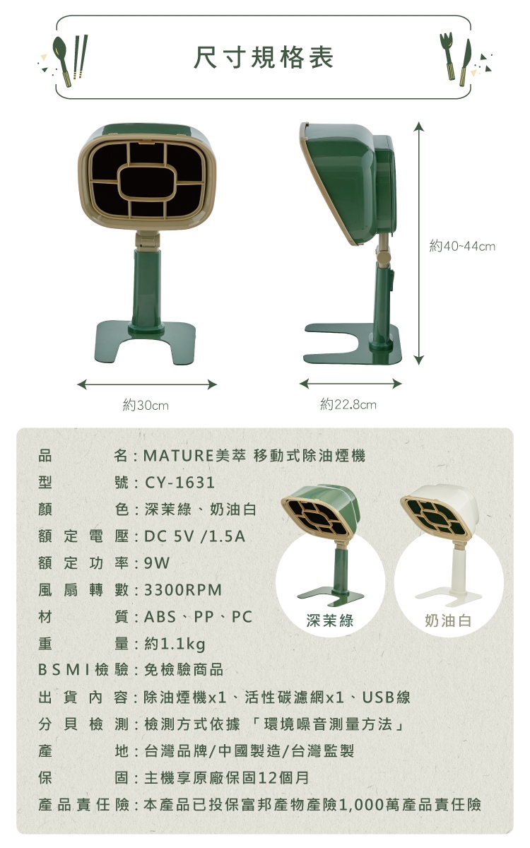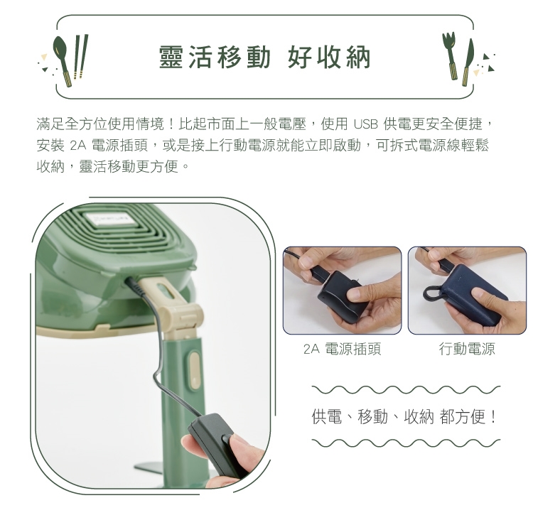 ◉移動式除油煙機│使用USB供電便捷安全,滿足全方位使用情境場合