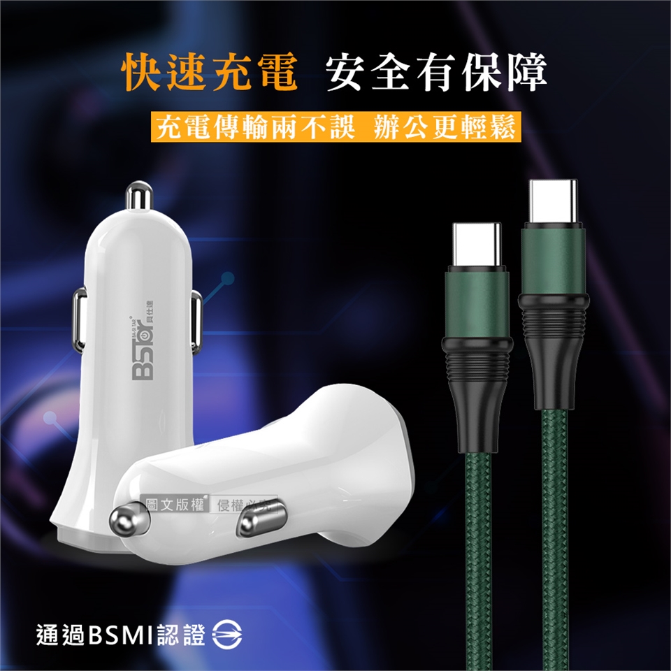 BStar貝仕達 20W 全兼容雙孔車充+100W 雙Type-C 傳輸充電線組合