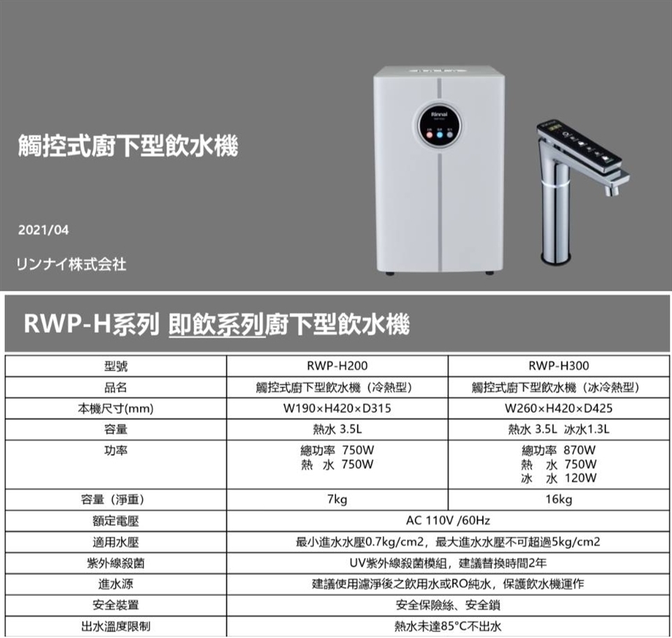 | 出水溫度限制 | 熱水未達85度C不出水,冰水超過30度C不出水 |