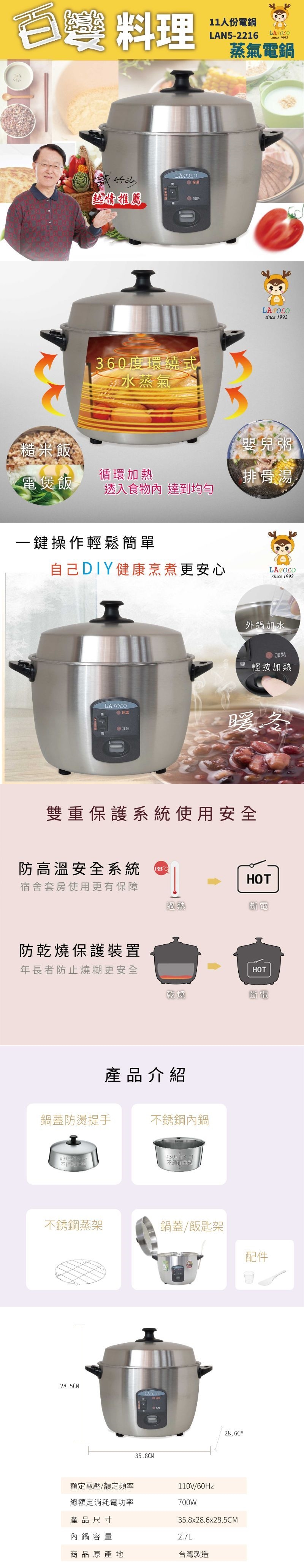 LAPOLO 11人份蒸氣不鏽鋼電鍋 LAN5-2216