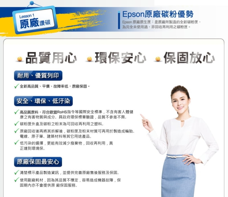EPSON 原廠碳粉匣 ─ 安全、環保、低汙染