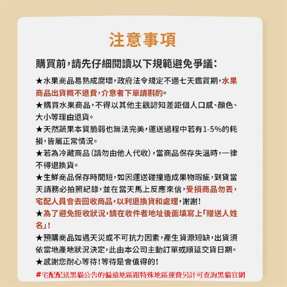 商品有問題請於到貨當日完成檢查,並於當日完成回報,逾時不受理。