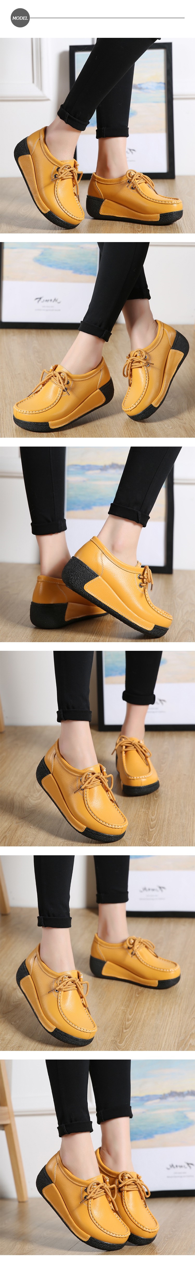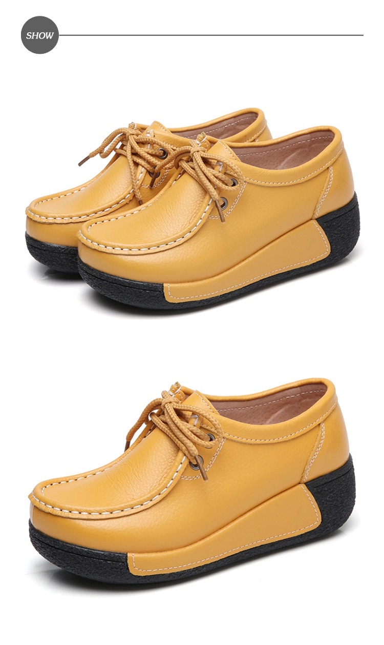 【MOM】休閒鞋 厚底休閒鞋/真皮個性縫線撞色拼接經典繫帶厚底休閒鞋 黃