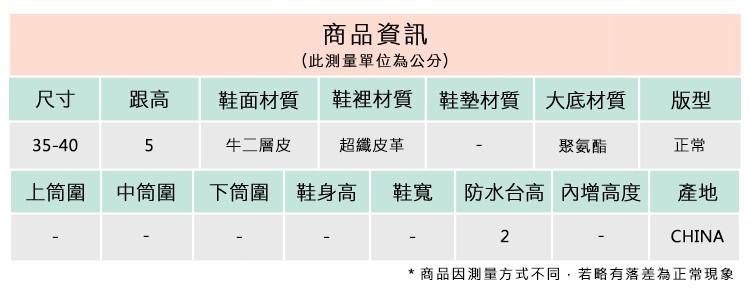 2.鞋類商品依功能及用途之不同,鞋底各有其止滑係數之個別不同,使用鞋類商品請用於正常平坦之路面,非雨鞋或雨靴類商品,請避免穿著於下雨濕滑路面上行走。