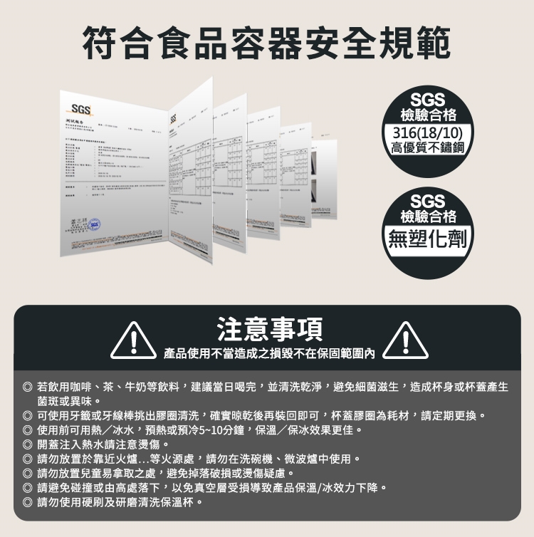 ※若飲用咖啡、茶、牛奶等飲料,建議當日喝完,並清洗乾淨,避免細菌滋生,造成杯身或杯蓋產生