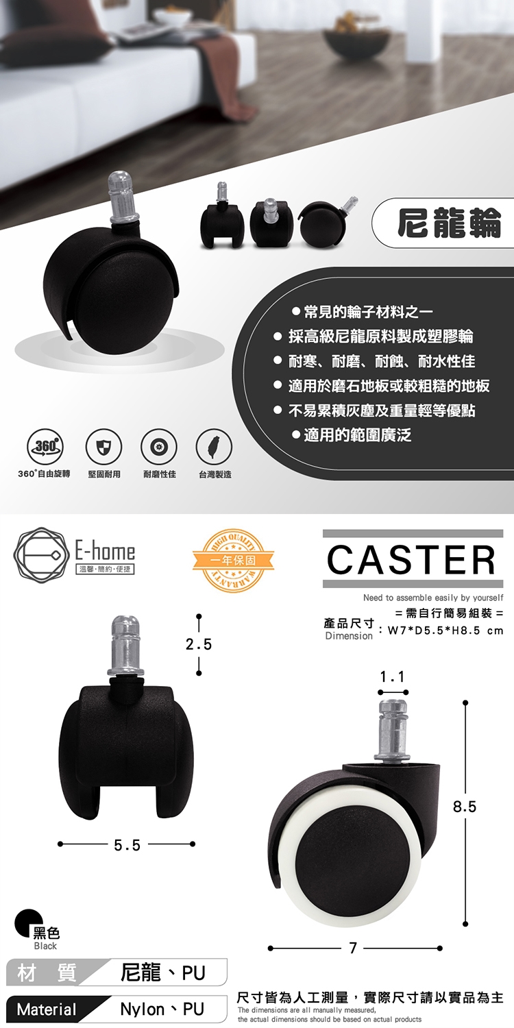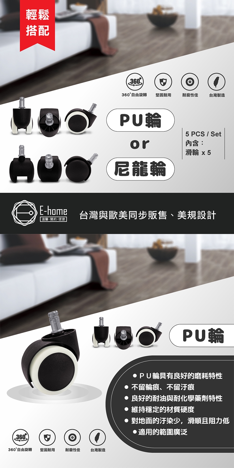 [E-home]電腦椅滑輪-PU輪&尼龍輪,電腦椅專用的PU輪以及尼龍滑輪,是各式電腦椅的專屬必備配件。