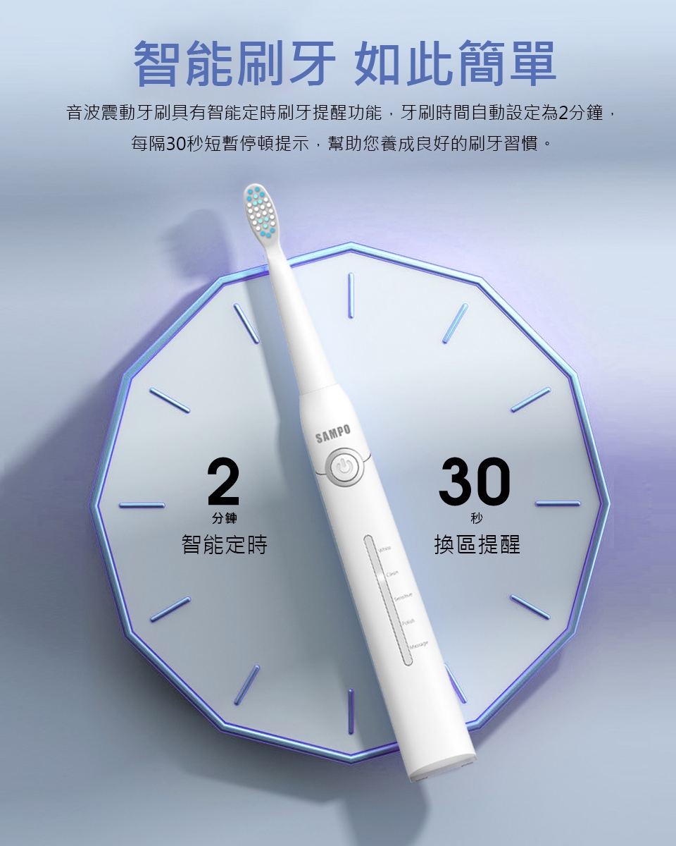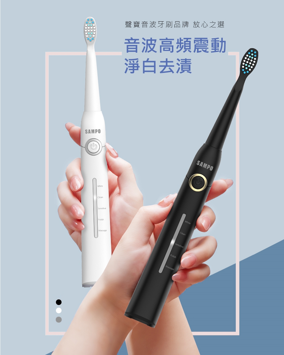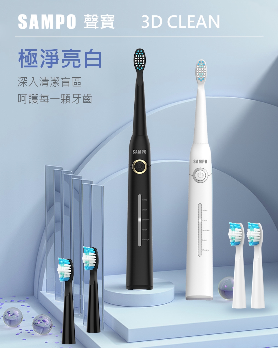 1. 【SAMPO聲寶】聲寶五段式音波牙刷TB-Z2002L (共刷頭3入) (黑 / 白 兩色任選)