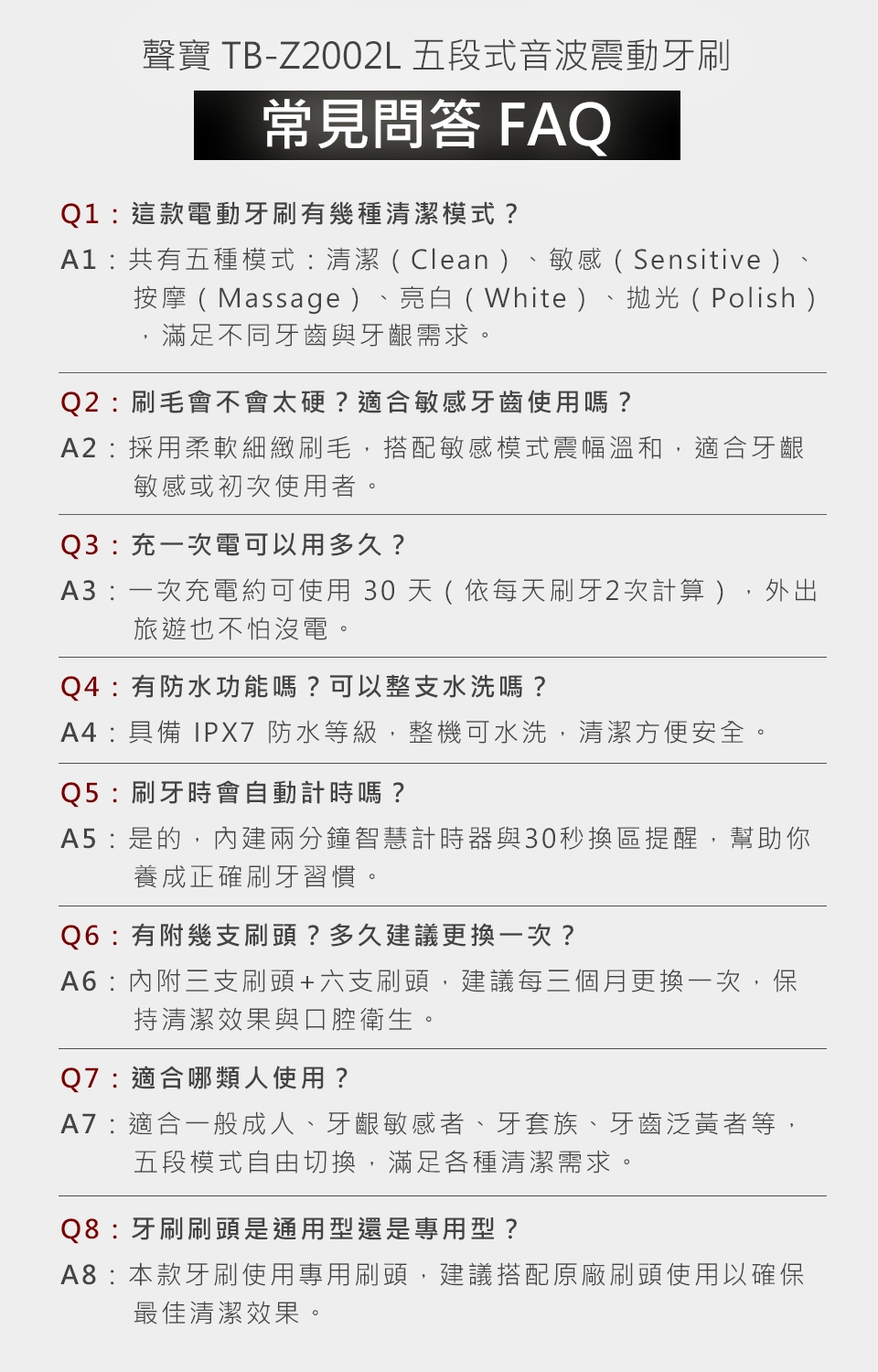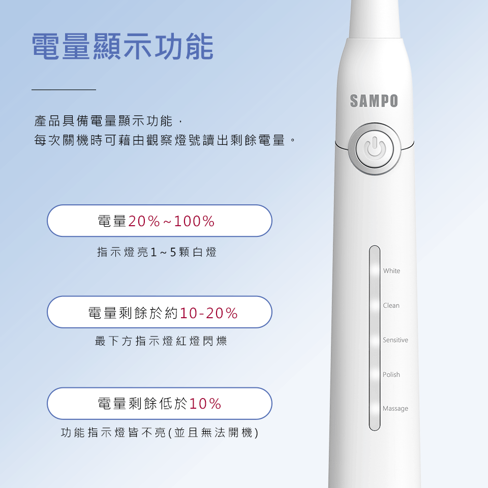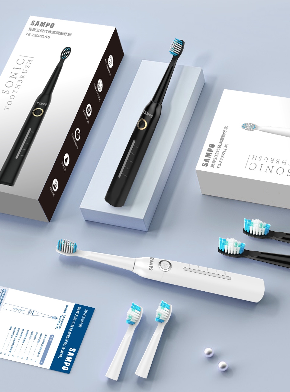 1. 【SAMPO聲寶】聲寶五段式音波牙刷TB-Z2002L (共刷頭3入) (黑 / 白 兩色任選)