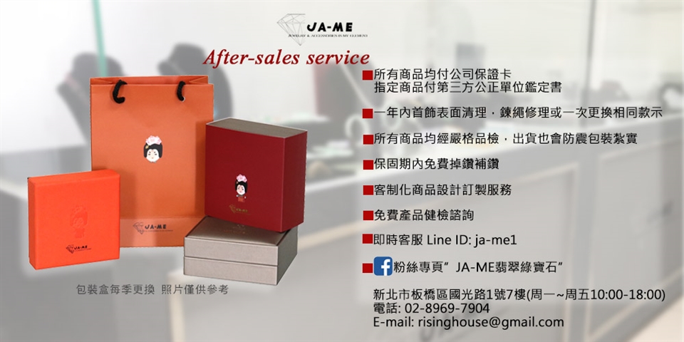1.天然寶石的內含物和顏色每個都不一樣,JA-ME在製作時嚴選每一批寶石, 但是拍照的關係顏色與實品會有些許差異,電腦螢幕設定也會造成實品與圖片略有不同,所以出貨以實際商品顏色為準,敬請見諒。