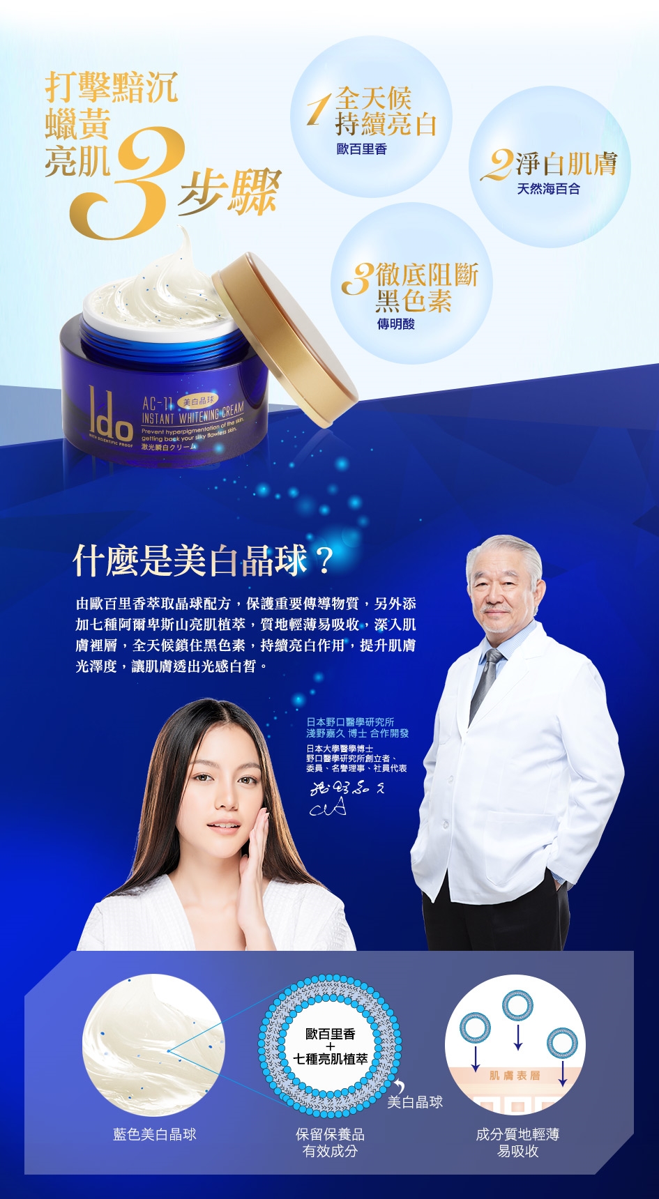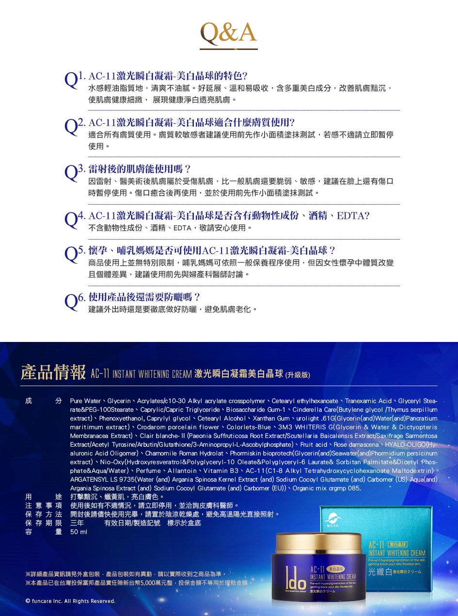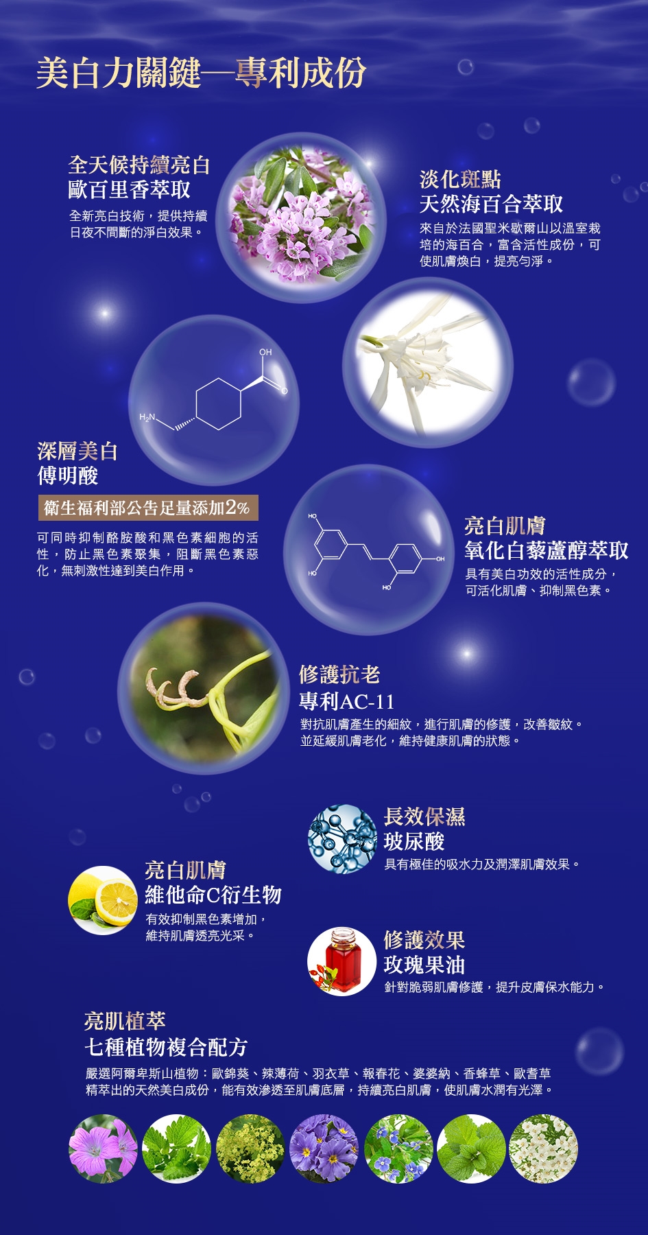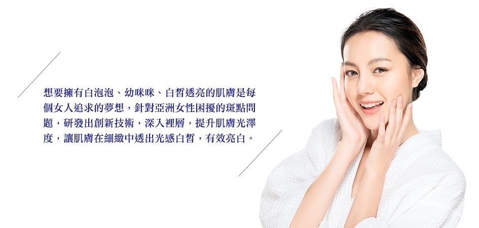 用途:抑制黑色素形成、美白水嫩、潤澤防護肌膚。