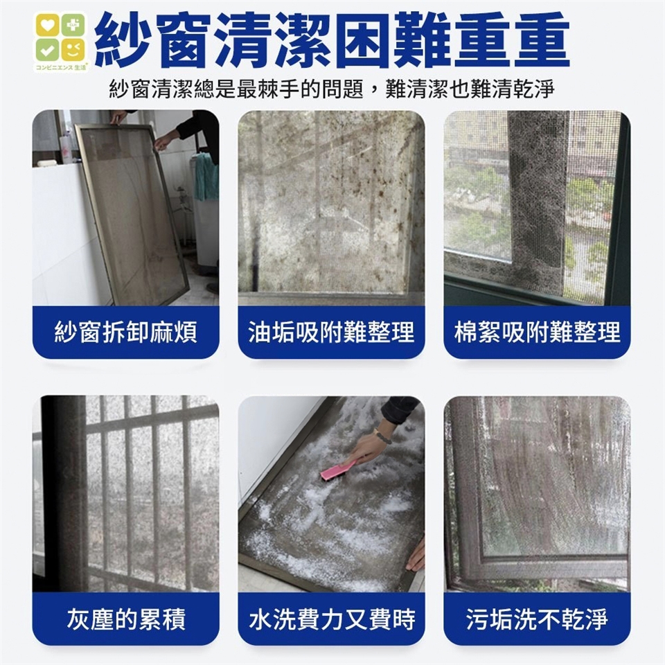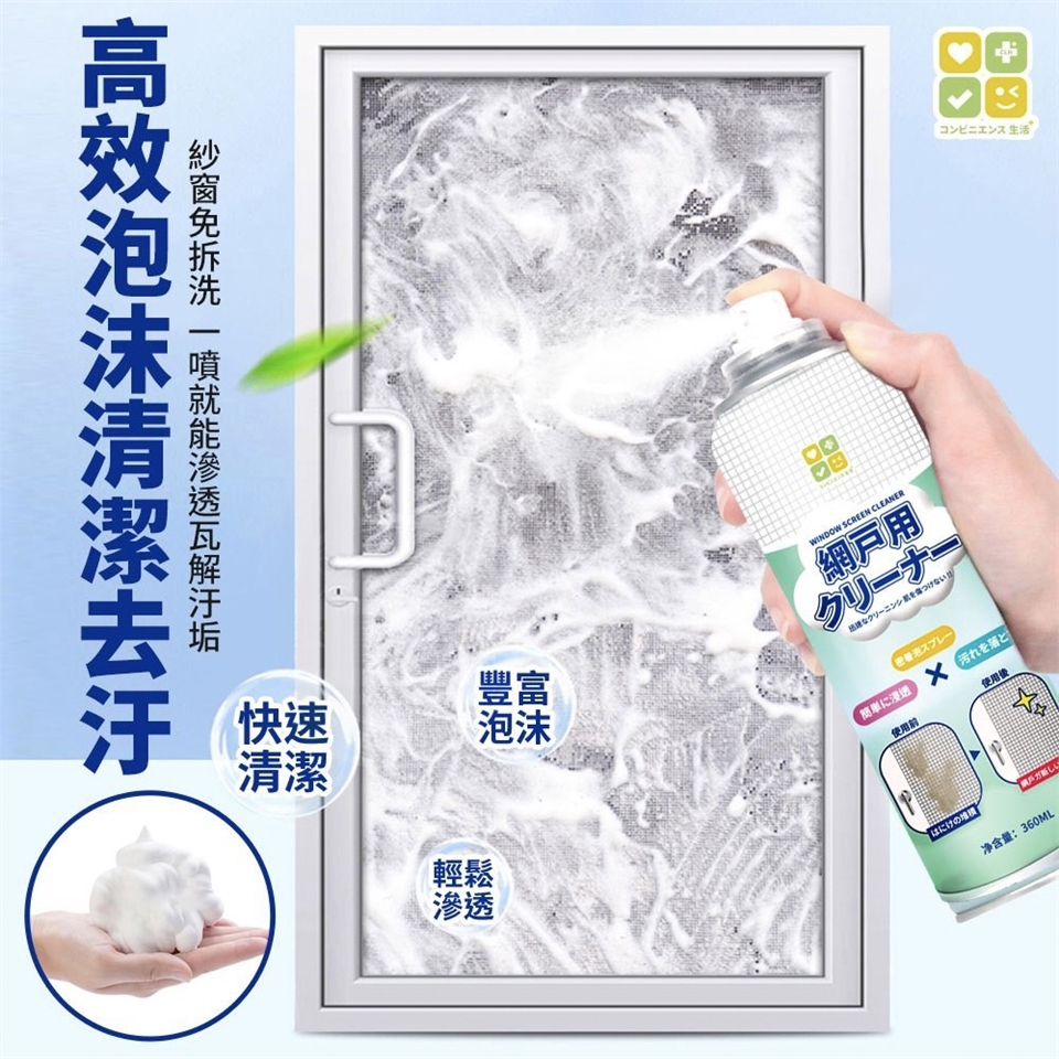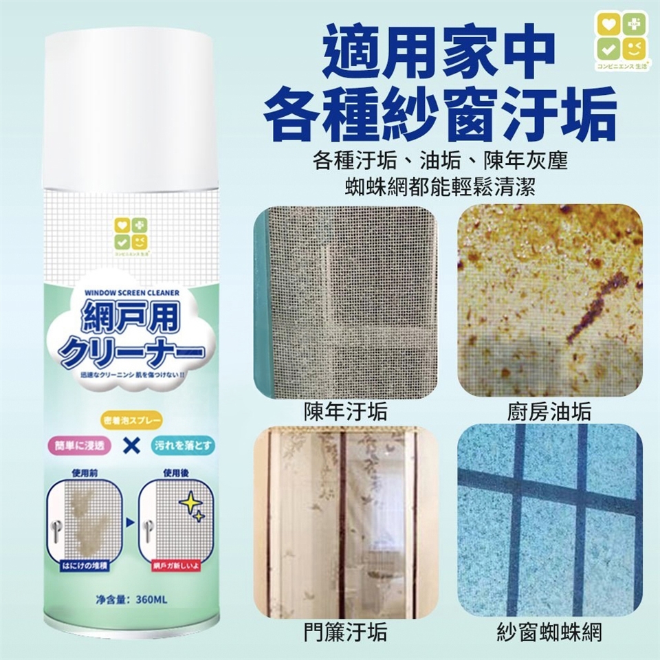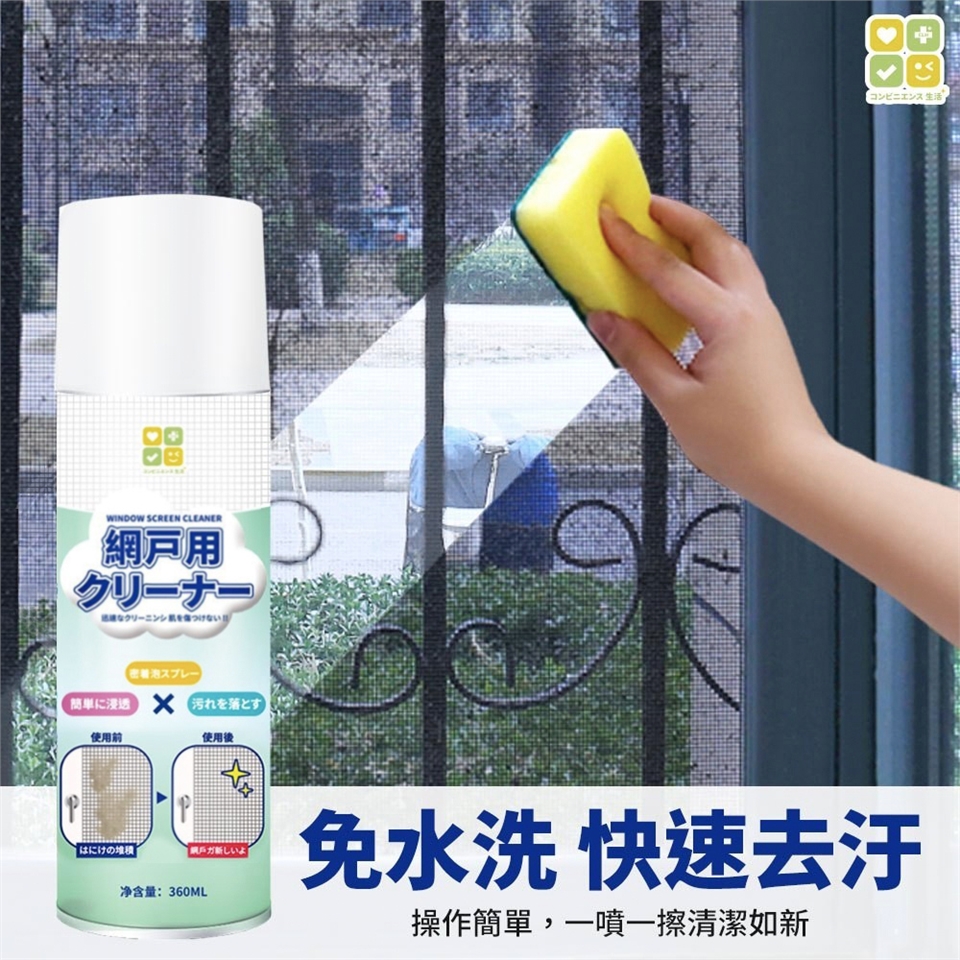 1. 使用前輕輕搖晃均勻,將泡沫薄薄的噴在紗窗污漬處,直至覆蓋網眼