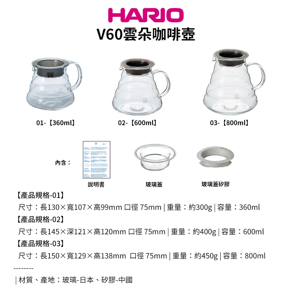 [ HARIO 雲朵系列 ] V60雲朵60咖啡 02 玻璃分享壺-透明 600ml [XGS-INT-01TB]