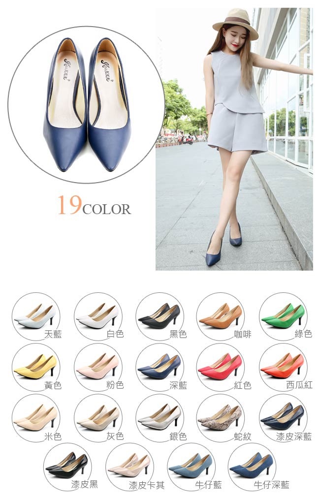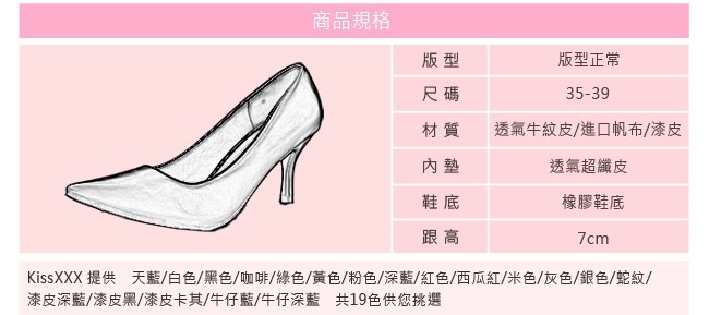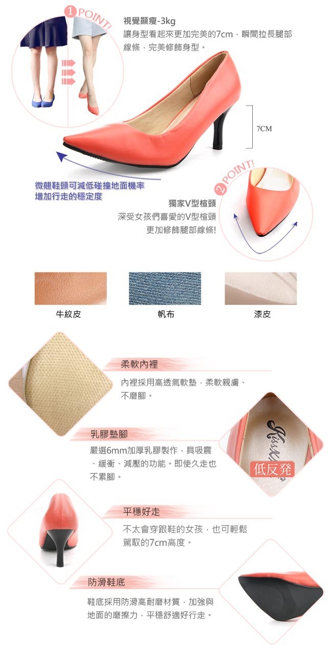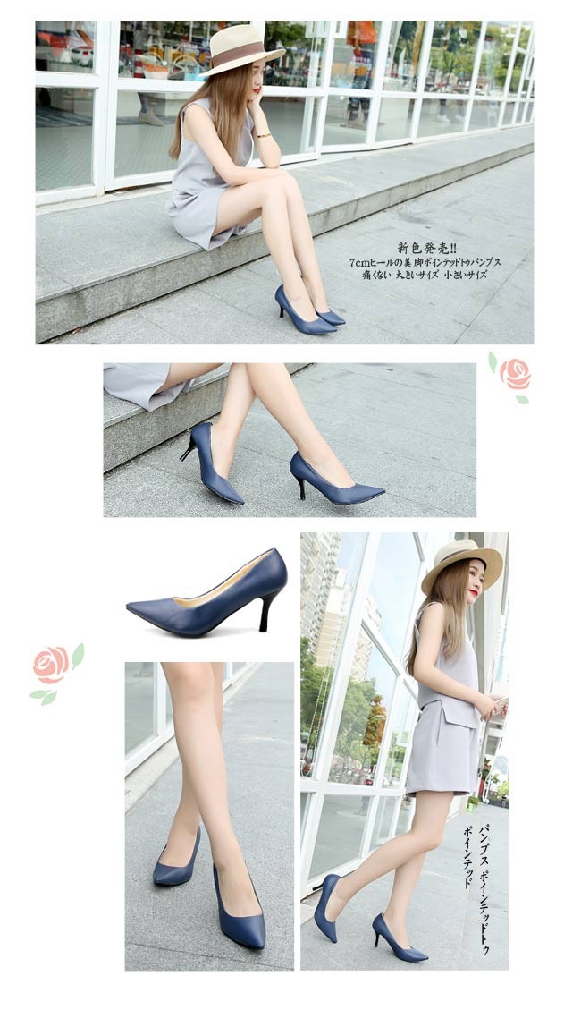 【KissXXX】跟鞋 高跟鞋/低反發舒適感美腿效果7CM小尖頭高跟鞋(深藍)