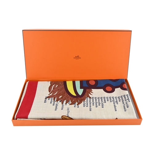 Hermes 愛馬仕 Botanica Grafica 140植物園混羊絨披肩/方巾(自然/磚塊/黃)