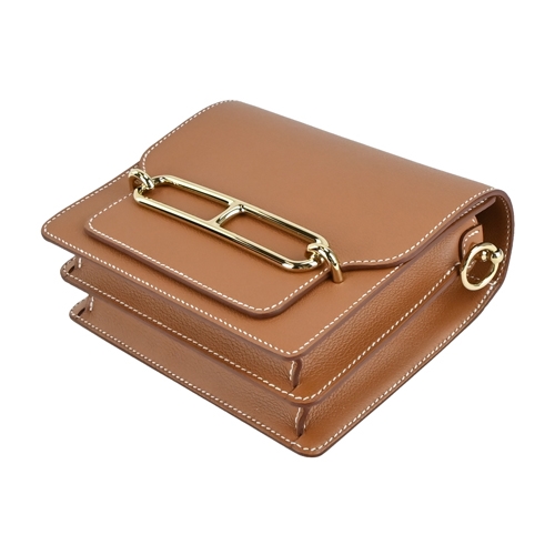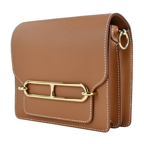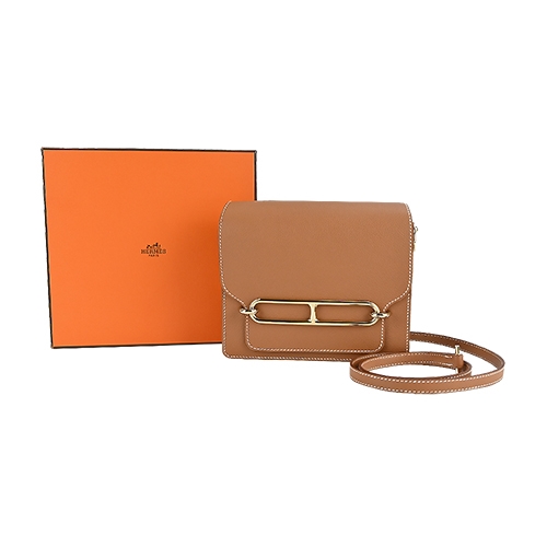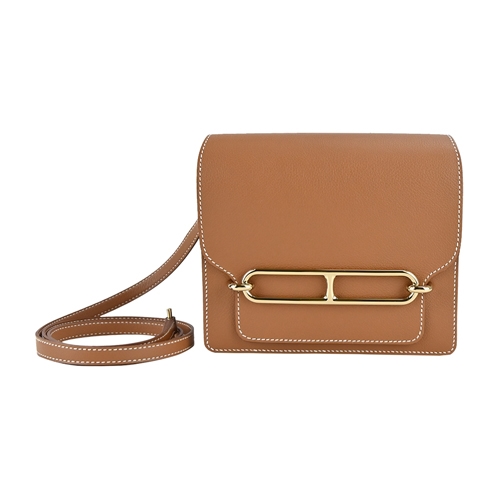 Hermes 愛馬仕 MINI ROULIS Evercolor&Swift牛皮方形斜背包(37駝金/U刻/淺金釦)