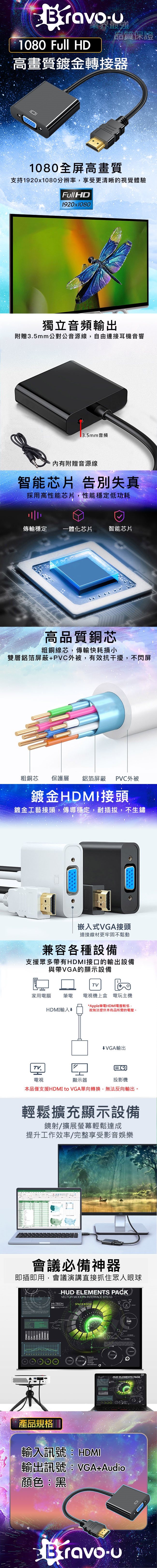 ◆ 將HDMI數位訊號轉換為VGA類比訊號
