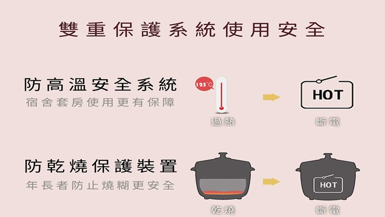 防高溫,防乾燒雙重安全保護裝置,使用更安心