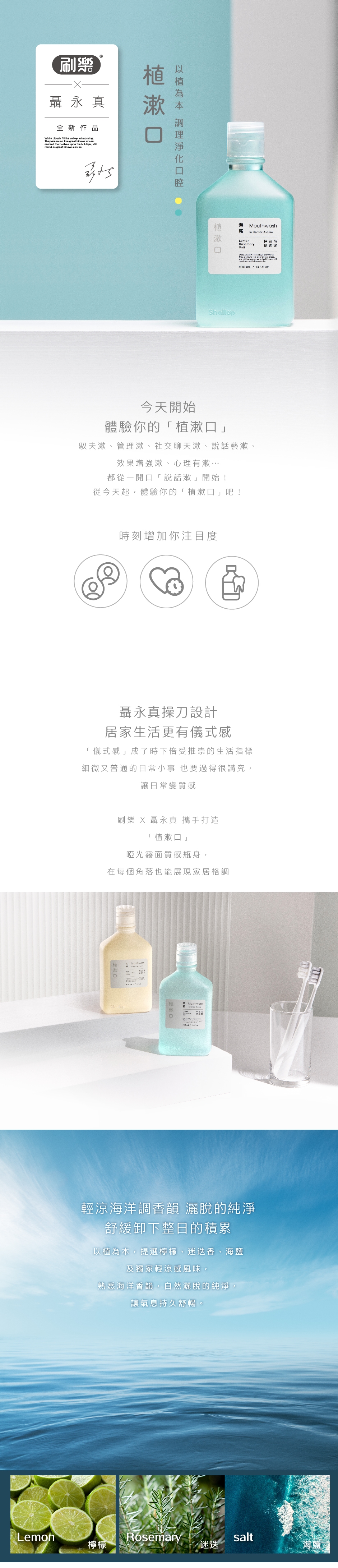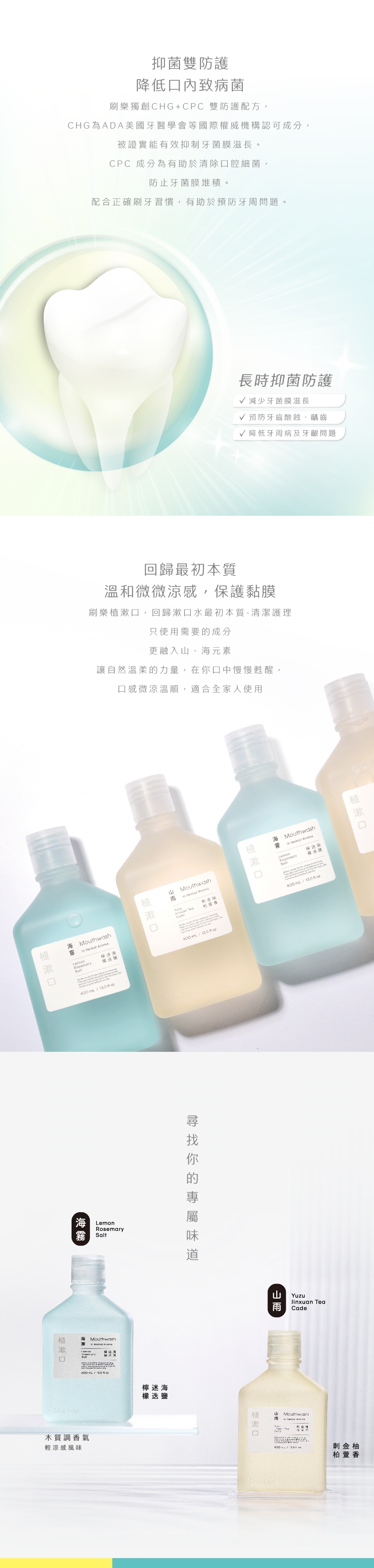 早晚刷牙後,漱口30秒即可吐出,不需再用清水漱口。