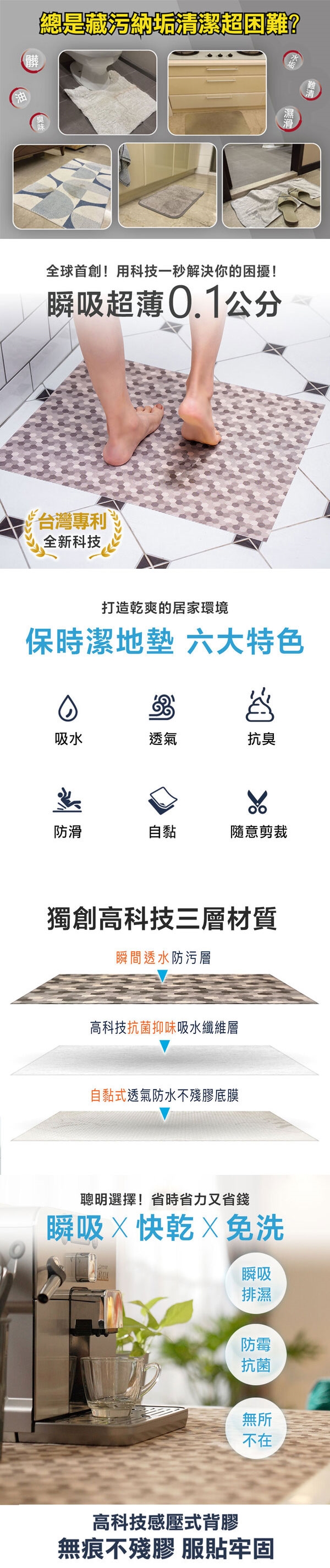 可以1張,2張,3張...重疊使用,增加腳踏舒適感,臟污時撕去表面第一張即可。