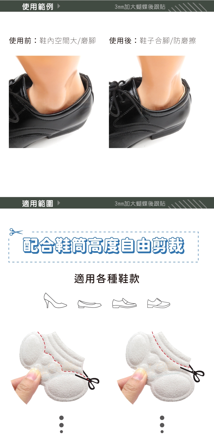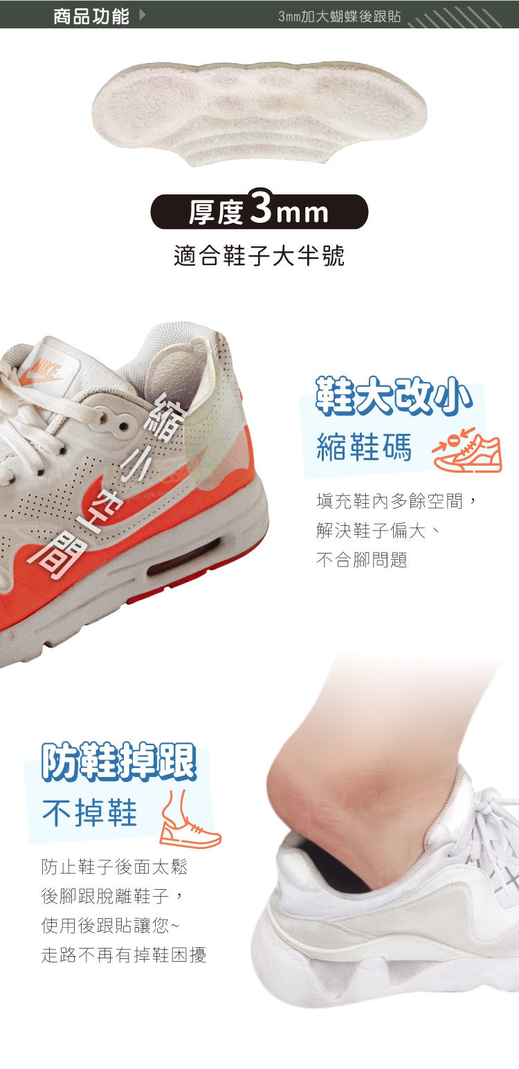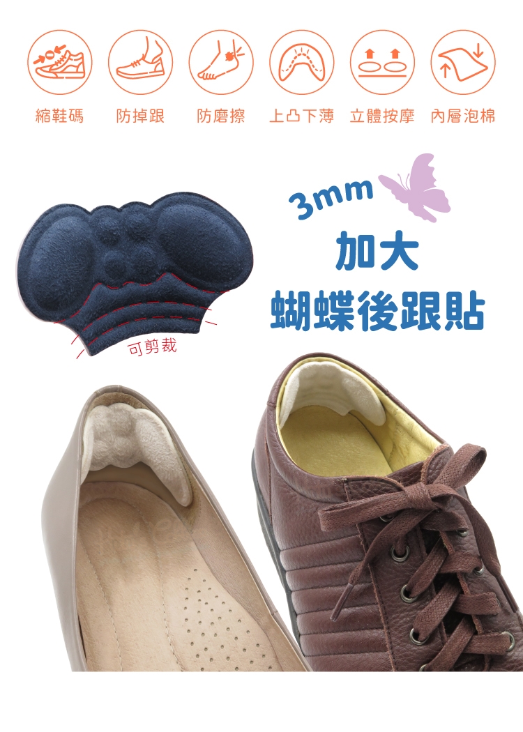 3mm加大蝴蝶後跟貼功能: