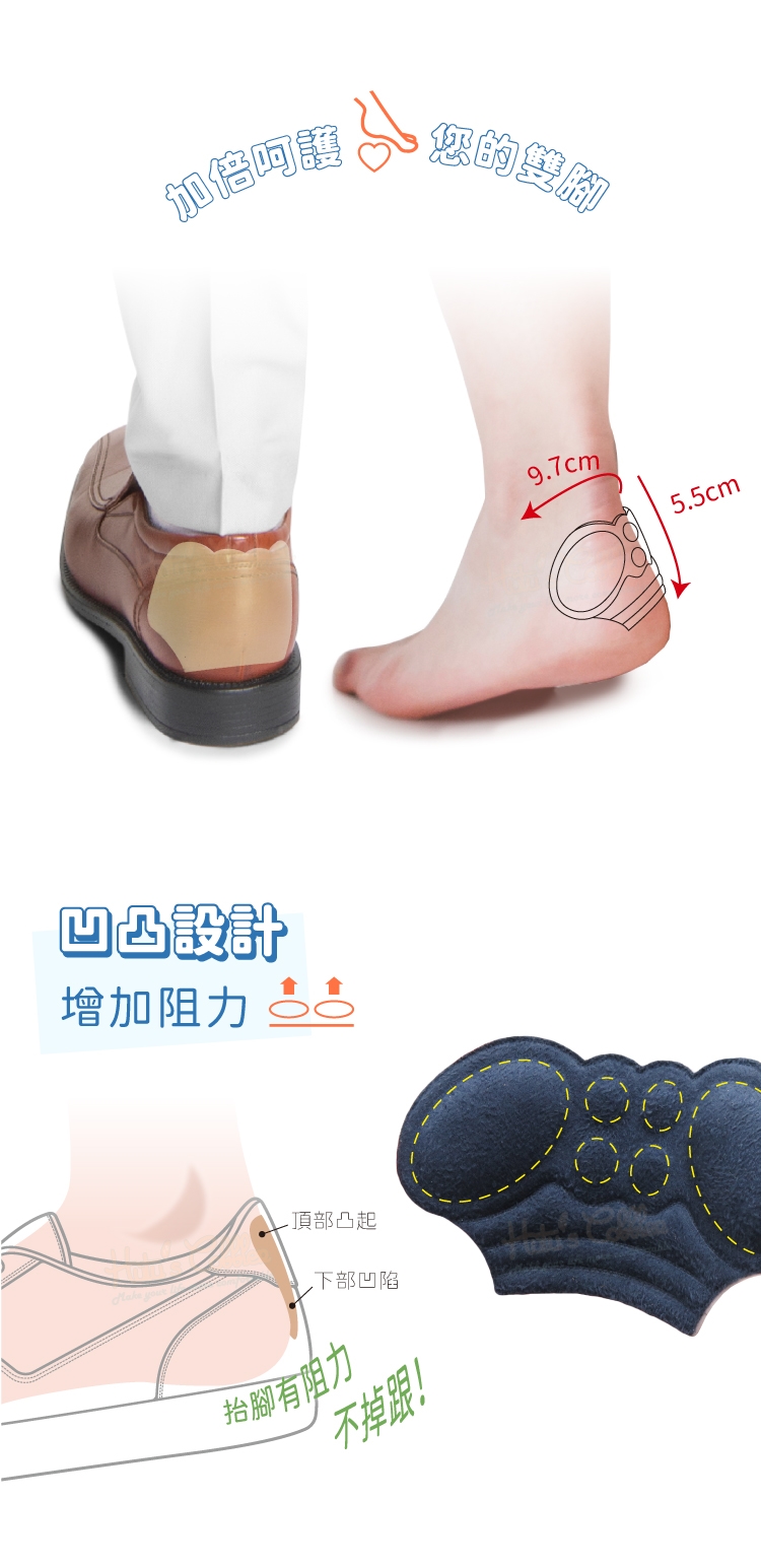 保護後跟 防磨腳:防擦傷、防止鞋跟與腳後跟接觸磨擦到不舒服