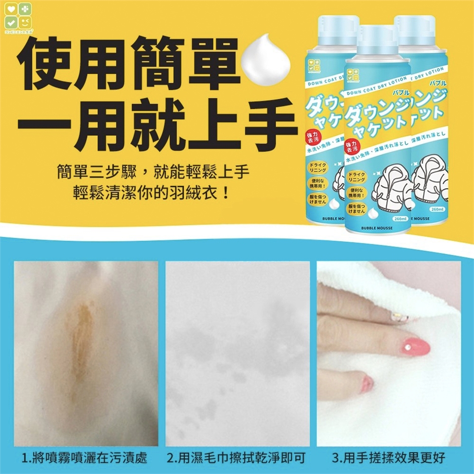 打開蓋子壓出泡沫,對準污垢處噴灑,再用乾淨的毛巾擦拭後晾乾即可。如污垢較嚴重,建議再次噴灑並用刷子洗刷