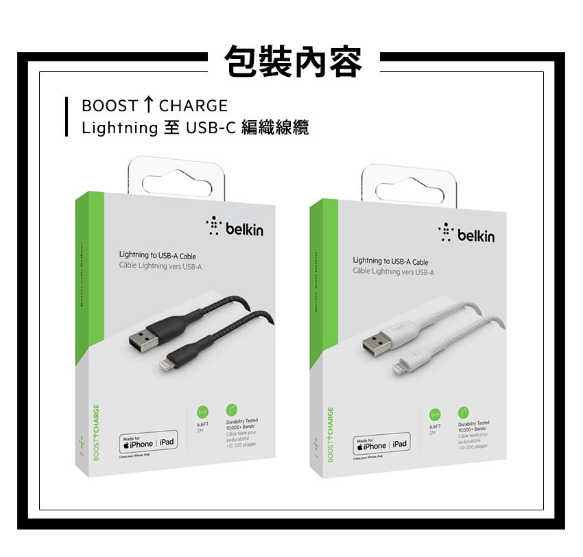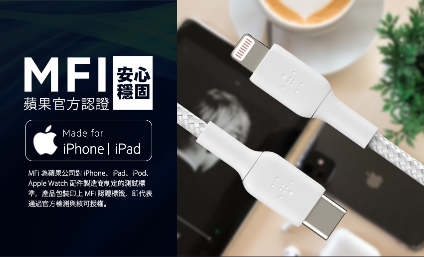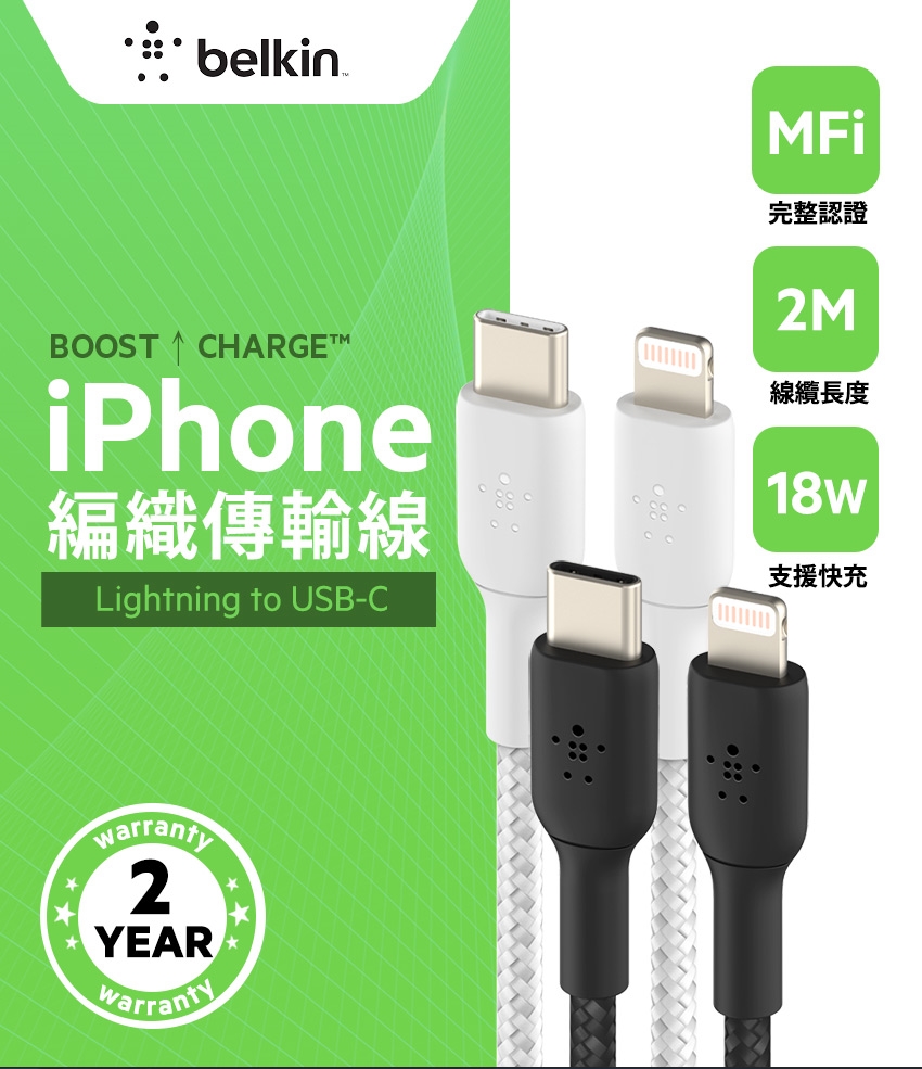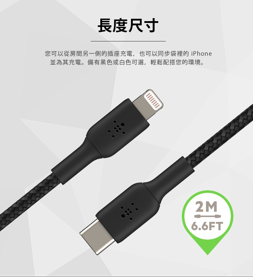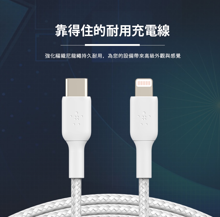 BELKIN貝爾金 編織傳輸線 USB-C 轉 Lightning 2M