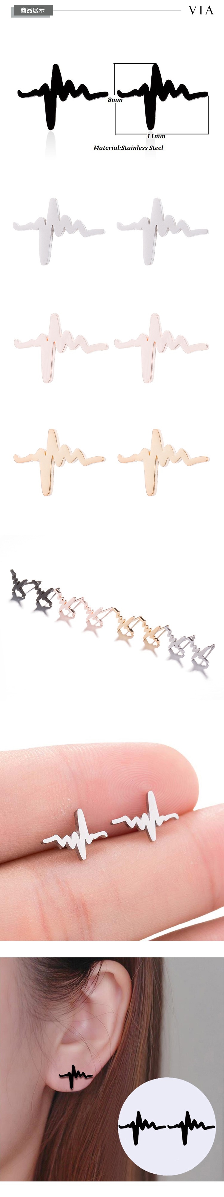 【VIA】符號系列 心跳電波造型白鋼耳釘 造型耳釘 鋼色