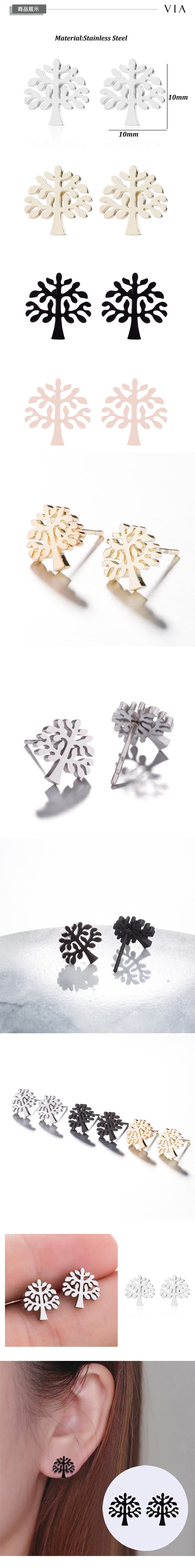 【VIA】植物系列 生命樹造型白鋼耳釘 造型耳釘 鋼色