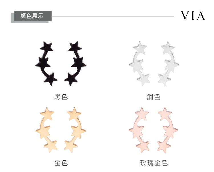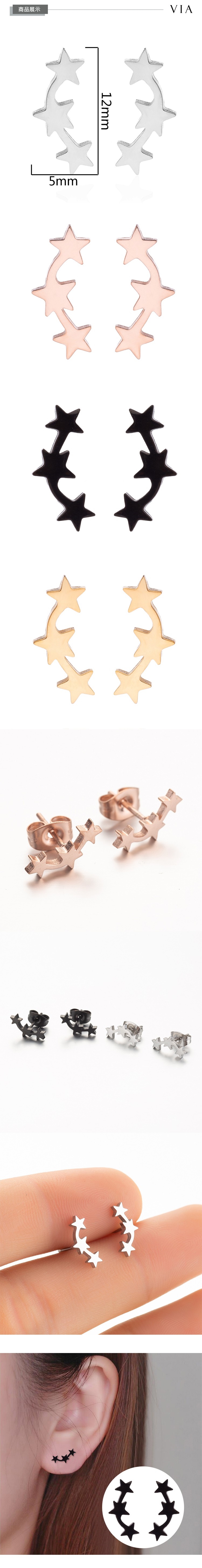 【VIA】星空系列 三顆星星造型白鋼耳釘 造型耳釘 鋼色