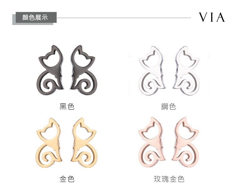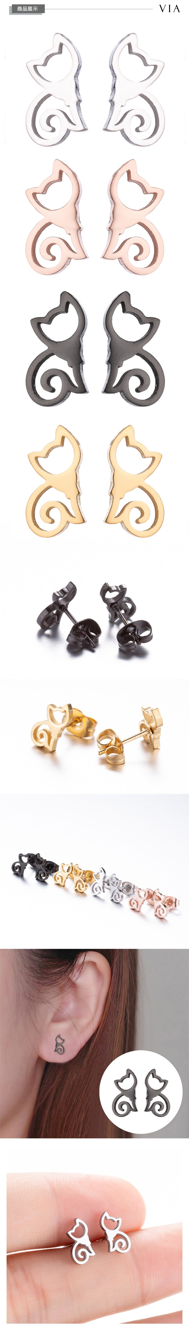 【VIA】動物系列 乖巧小貓咪造型白鋼耳釘 造型耳釘 鋼色