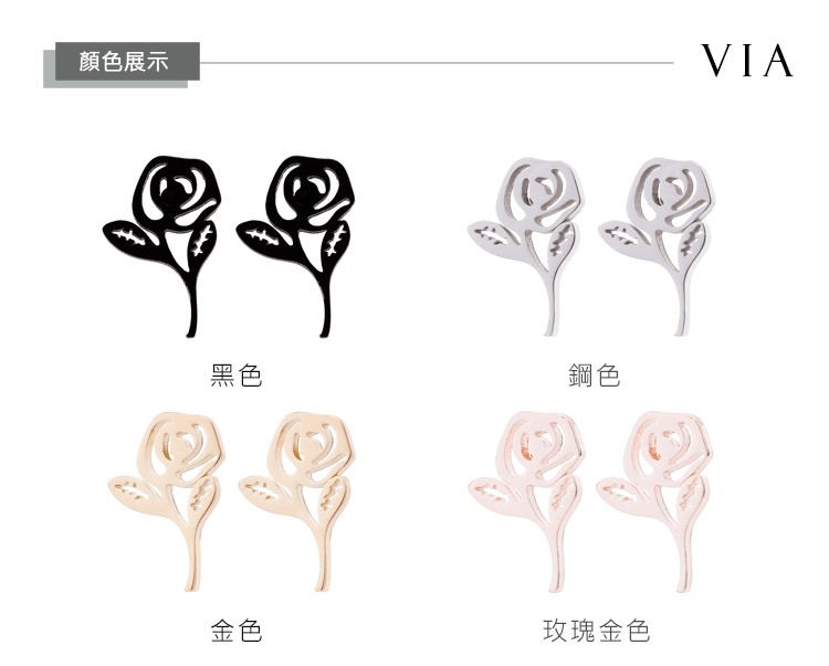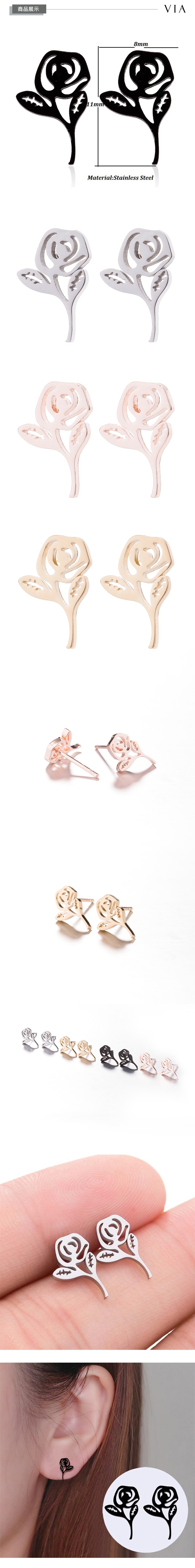 【VIA】植物系列 單朵玫瑰花造型白鋼耳釘 造型耳釘 鋼色