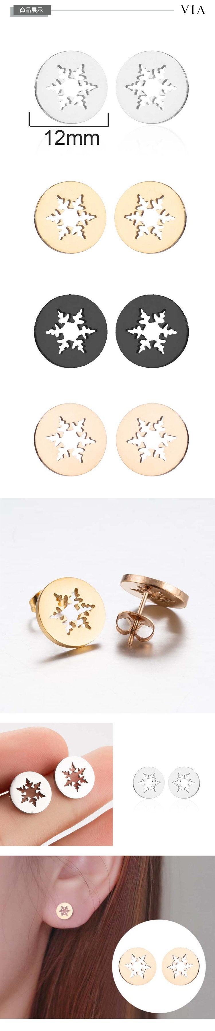 【VIA】節日系列 圓形縷空雪花造型白鋼耳釘 造型耳釘 鋼色