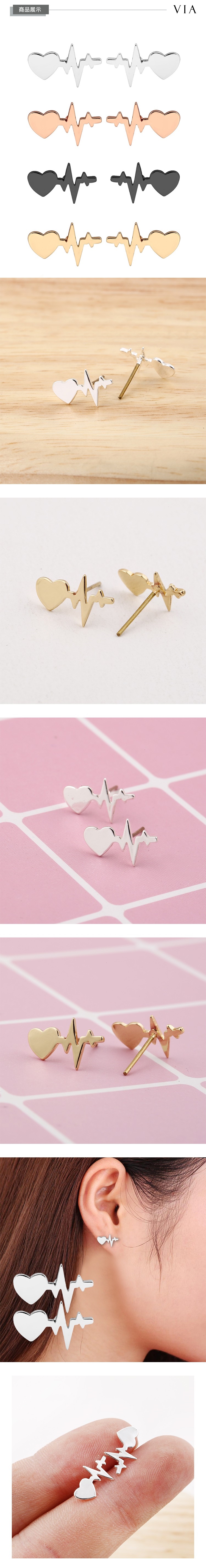 【VIA】符號系列 愛心心跳電波造型白鋼耳釘 造型耳釘 鋼色