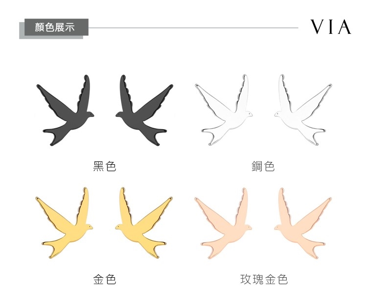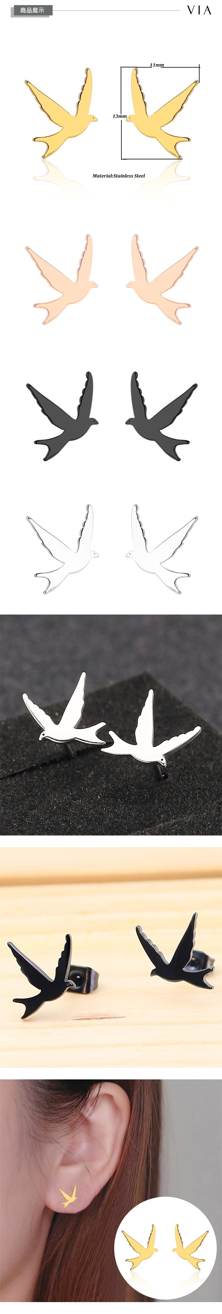 【VIA】動物系列 和平飛鴿造型白鋼耳釘 造型耳釘 玫瑰金色