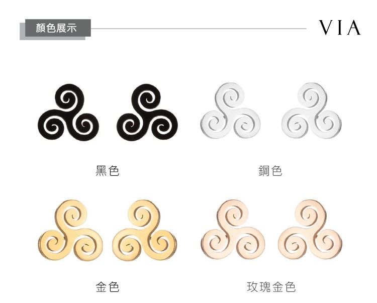【VIA】符號系列 復古捲雲紋造型白鋼耳釘 造型耳釘 鋼色