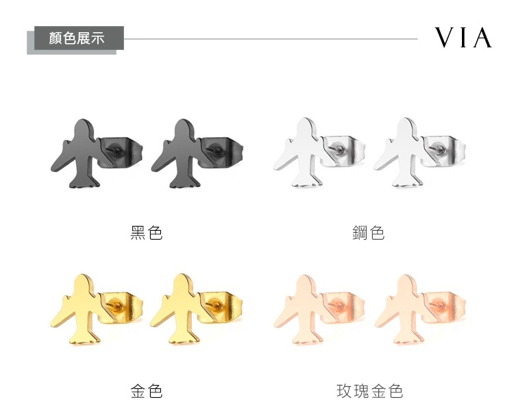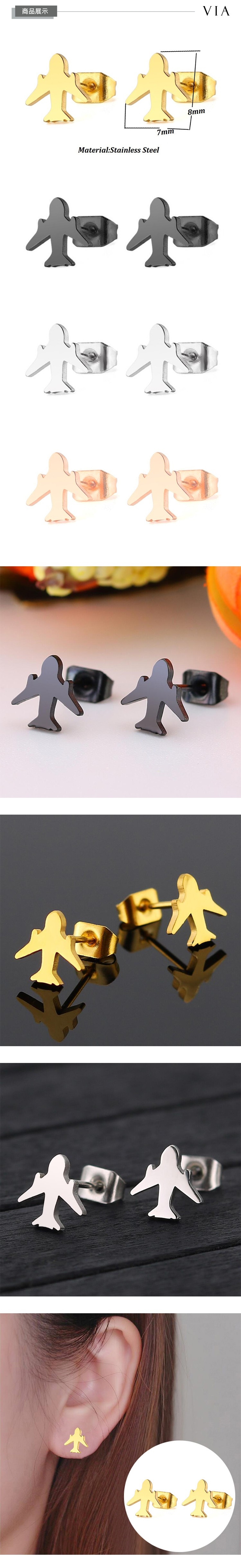【VIA】個性系列 可愛飛機造型白鋼耳釘 造型耳釘 玫瑰金色