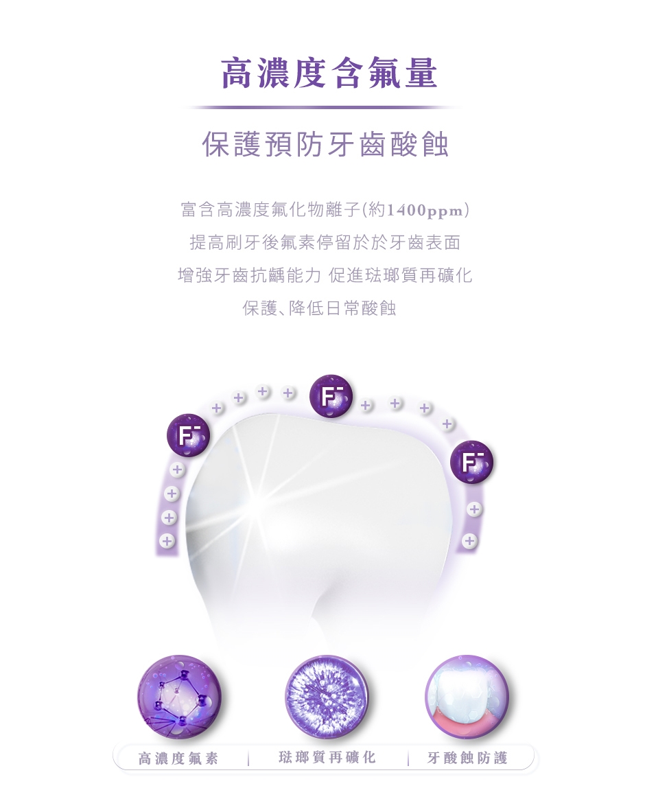 2. 兒童及正在使用任何含氟之補充品者,請於使用前諮詢牙醫師或醫師。建議6歲以下孩童之使用豌豆大的量,且於大人監督下刷牙,以減少吞食;3歲以下幼童不建議使用本產品。