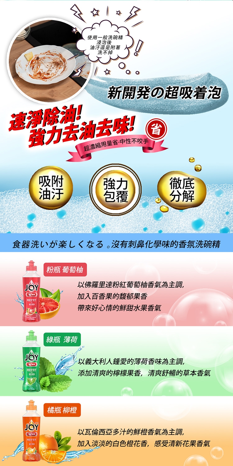 日本JOY速淨除油濃縮洗碗精,2022年最新黃金比例配方