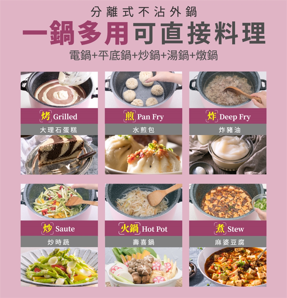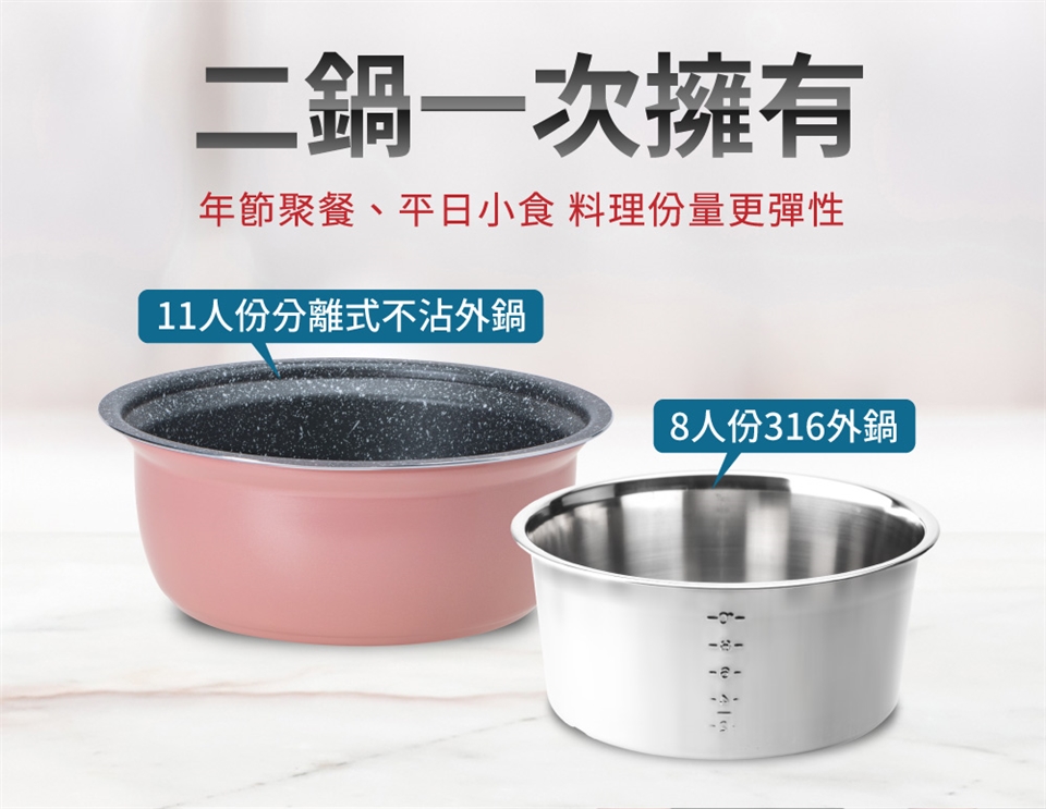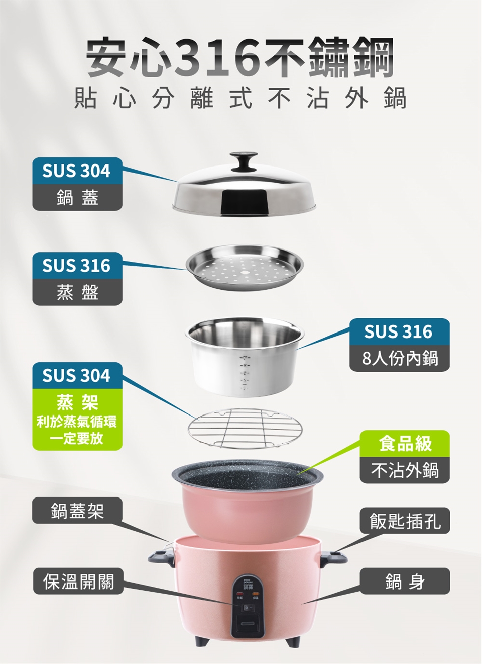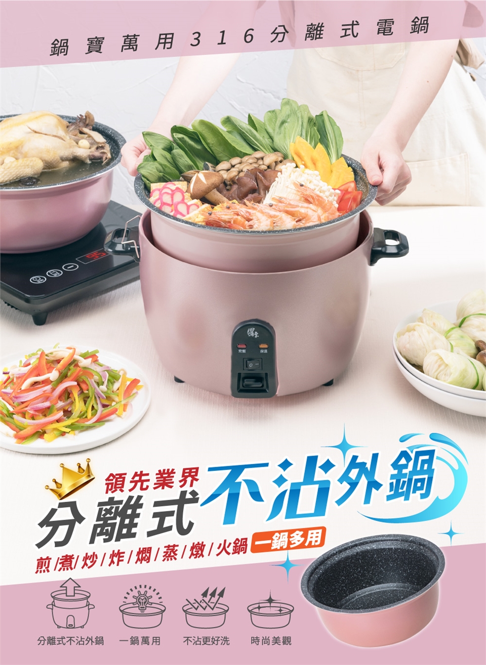 品名:【鍋寶】萬用316分離式電鍋8人份-玫瑰金