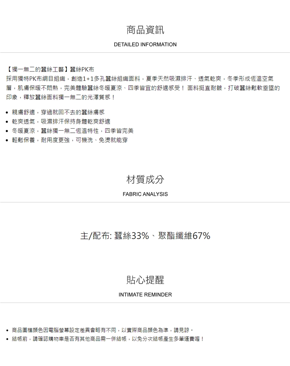 ► 請避免於太陽直射處曝曬,避免蠶絲纖維損壞。