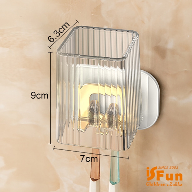 多功能衛浴收納漱口杯架組,使用壁貼免打洞功能讓杯子倒掛,